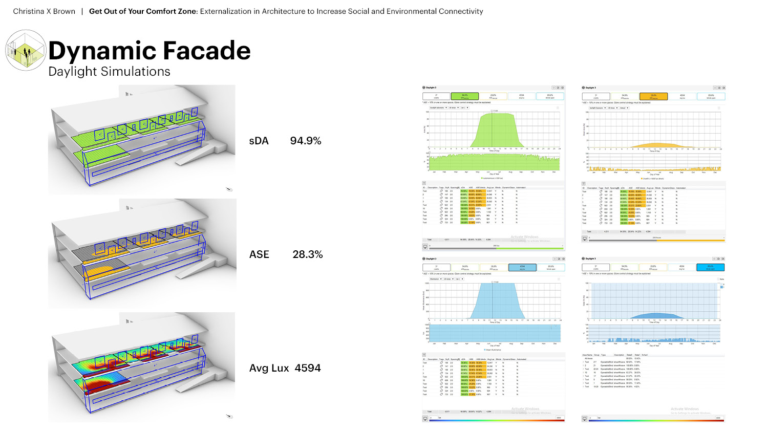 Additionally daylight analysis shows that the daylight quality improves greatly through these designs due to increased connections to the environment.