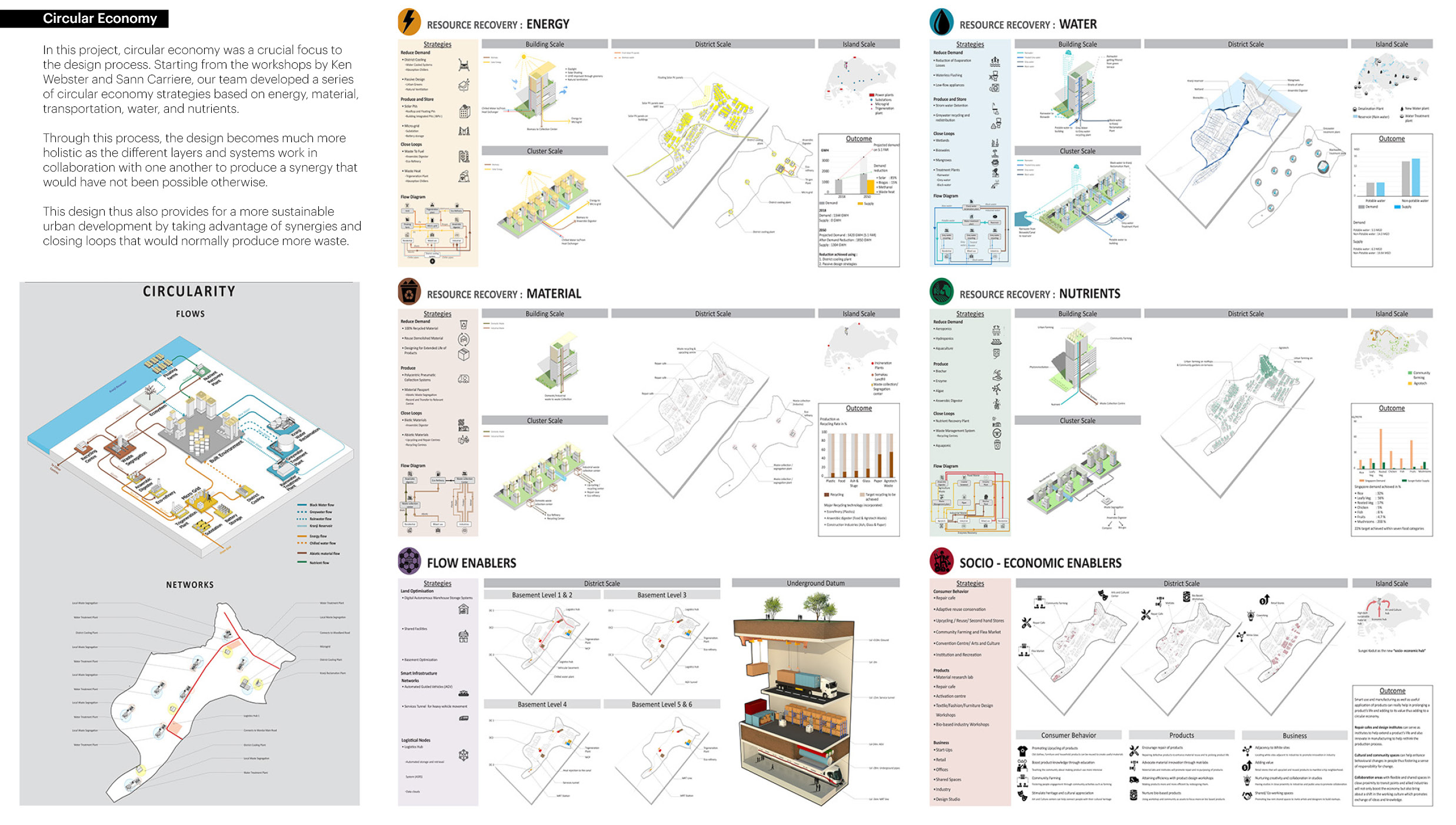 Through intensive workshops on circular economy, ecology and sustainability, and urban design, a framework understanding of ecological thinking and circular economy was developed for this 6km sqm site.